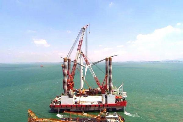 此次安裝完成的最后一臺風(fēng)機采用風(fēng)輪整體吊裝的方式,最大的難點為發(fā)電機需要單獨吊裝,同時還要專用吊具配合,以保證發(fā)電機與豎直面成6度的傾角,這對吊裝提出很高的要求。中鐵大橋局克服了施工當中海上季風(fēng)等惡劣自然條件的影響,安全優(yōu)質(zhì)地完成了吊裝。