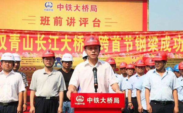 2018年8月8日上午,武漢青山長江大橋主跨鋼梁首架儀式在武昌岸現(xiàn)場(chǎng)舉行。中鐵大橋局副總經(jīng)理張春新出席活動(dòng)并致詞,武漢交投總經(jīng)理陳順平出席儀式并宣布大橋主跨首節(jié)鋼梁架設(shè)成功,中鐵大橋院副總經(jīng)理莊勇出席了活動(dòng)。